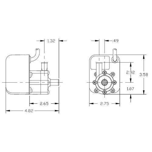 The Little Giant 1-EUAA-MD series features leakproof, seal-less magnetic drives and are designed for in-line or submersible use. Volute and magnet housing are glass-filled polypropylene for excellent chemical resistance. Impeller is glass-filled polypropylene and ceramagnet "A" (barium ferrite). Shaft is ceramic and thrust washers are Rulon "J" (Teflon® ) for excellent wear and trouble-free service. Pumping heads are easily rotated, cleaned or serviced with no special tools required. Spindle shaft is supported at both ends to prevent impeller damage during start-up and stop of pump.