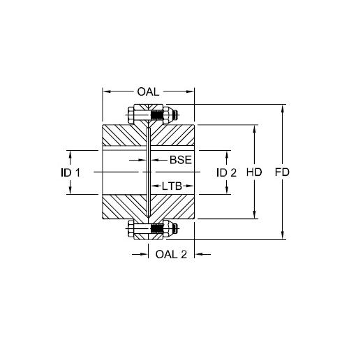 The FRR Type coupling consists of two rigid hubs and one accessory kit. Exposed bolts (E) are also the standard design for this coupling, though shrouded bolt (S) The FRR Type coupling does not accommodate for any angular misalignment.