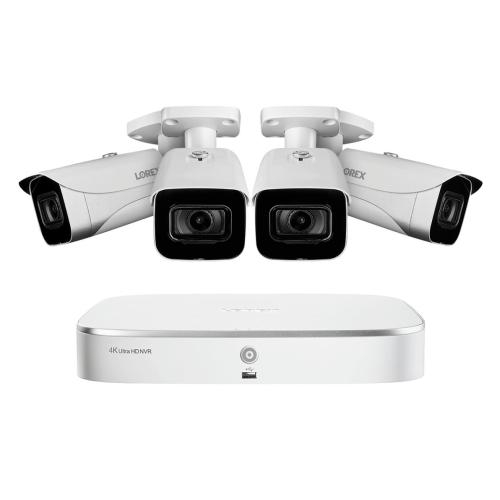 With industry-leading 4K (8 megapixel) resolution, this security camera system from Lorex will bring a whole level of detail to your security monitoring. It includes 4K capable 8-channel N841A82 Series network video recorder (NVR) and four 4K smart IP bullet security cameras. Whether you are looking to protect your home or small business, this powerful security camera system will help you secure the things that matter most.