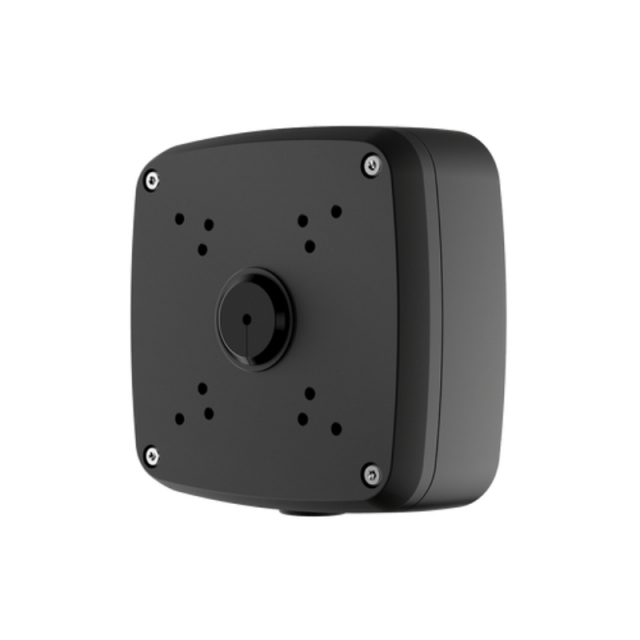 This weatherproof security mounting junction box allows you to conveniently hide your security camera cables from view and protect them from vandalism. It will also provide you with easier access to cabling connections without having to unmount your camera. This particular junction box has four sets of holes, 90° apart.