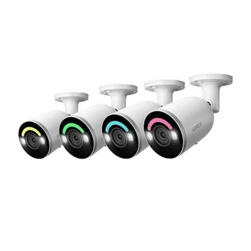 Lorex, E894AB-W-4PK, 4K Smart Security Lighting Deterrence Bullet AI PoE IP Wired Cameras, 4 Packs