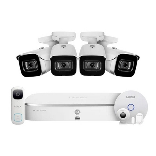 Lorex, FN4K2-84WB-DS, Fusion 4K 16 Camera Capable (8 Wired, 8 Wi-Fi) 2TB NVR System with 4 IP Bullet Cameras, 2K Wired Doorbell and Sensor Kit