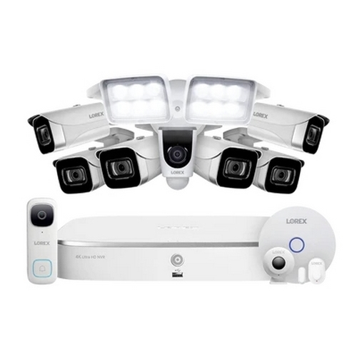 Lorex, FN4K2-86WB-DSF, Fusion 4K 16 Camera Capable (8 Wired, 8 Wi-Fi) 2TB NVR System with 6 IP Bullet Cameras, 2K Wired Doorbell, Sensor Kit and 1080P Floodlight