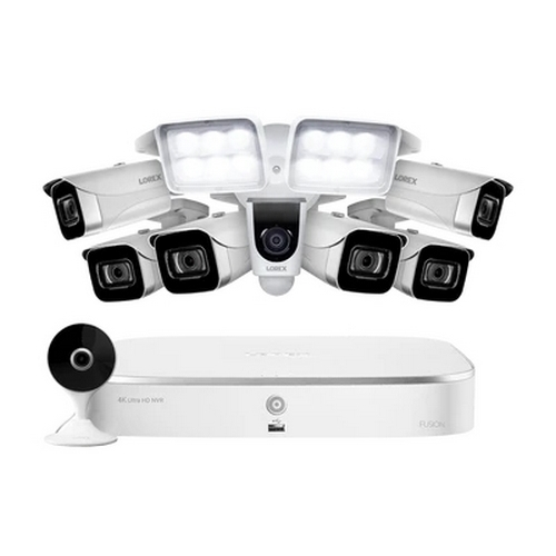 Lorex, FN4K2-86WB-JF, Fusion 4K 16 Camera Capable (8 Wired, 8 Wi-Fi) 2TB NVR System with 6 IP Bullet Cameras, 2K Indoor Wi-Fi Security Camera and Wi-Fi Floodlight Camera