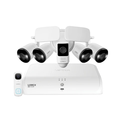 Lorex, FN4K2SD-84WB-DF, Fusion 4K 2TB NVR System with 4 x Smart Deterrence Bullet Cameras, One 2K Wired Doorbell, and One 2K Floodlight