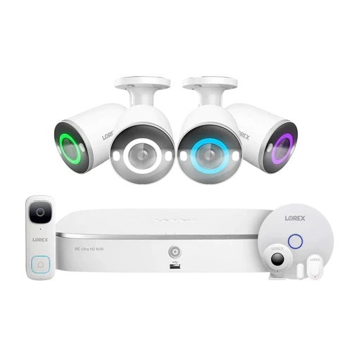 Lorex, FN4K2SL-84WB-DS, Fusion 4K 16 Camera Capable (8 Wired, 8 Wi-Fi) 2TB NVR System with 4 Smart Security Lighting Bullet Cameras, One 2K Wired Doorbell and Sensor Kit