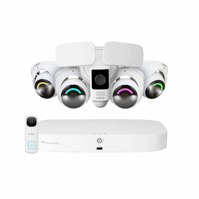 Lorex, FN4K2SL-84WD-DF, Fusion 4K 2TB NVR System with 4 x Smart Security Lighting Dome Cameras, One 2K Wired Doorbell, and One 2K Floodlight