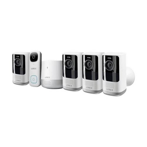 Lorex, H32A4TU-W, 2K Wire-Free Security System with 4 Battery-Operated Cameras and 2K Wi-Fi Video Doorbell