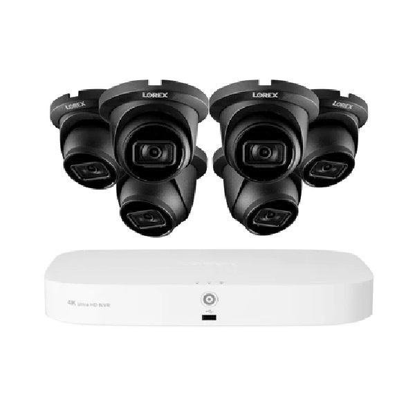 Lorex, N4K2-86BD-6, Wired 4K 2TB NVR System with 6 x Black IP Dome Cameras