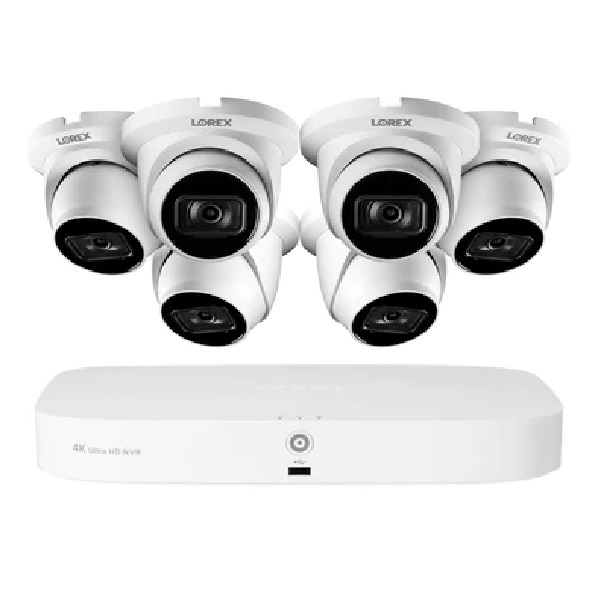 Lorex, N4K2-86WD-6, Wired 4K 2TB NVR System with 6 x White IP Dome Cameras