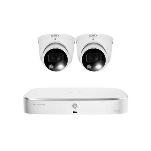 Lorex, N4K2SD-82WD-4, Fusion 4K 16-Channel (8 Wired, 8 Wi-Fi) 2TB NVR System with 2 Dome Cameras Featuring Smart Deterrence and 2-Way Audio