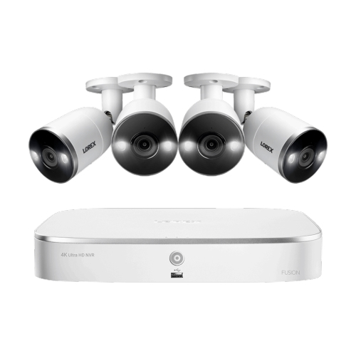 By combininglatest N842 Series NVR and four 4K Smart Active Deterrence cameras, this security camera system will providea high quality recording and the smartest features to protect property. Featuring Smart Motion Detection Plus, Active Deterrence LED lights and siren, two-way talk audio, this system is designed to stop potential events before happen. The NVR also includes a large 2TB hard drive for private local recording with no monthly fees and is easily connected toLorex Home App for easy remote viewing and smart motion notifications. As part of the Lorex Fusion collection, Can add up to 2 Lorex Wi-Fi products such as, Wi-Fi cameras, doorbells and floodlights. If looking to protect home, small business or commercial property, this powerful security camera system will have covered.