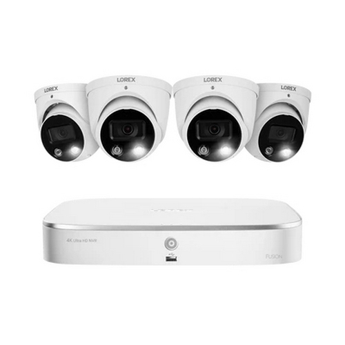 Lorex, N4K2SD-84WD-4, Fusion 4K 16-Channel (8 Wired, 8 Wi-Fi) 2TB NVR System with 4 Dome Cameras Featuring Smart Deterrence and 2-Way Audio