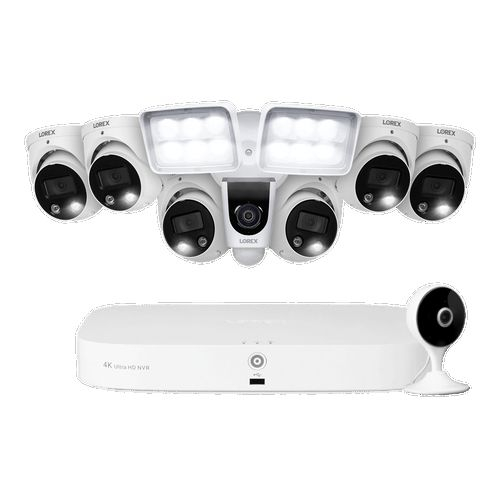 Lorex, N4K2SD-86WD-JF, 8-Channel NVR Fusion System with Six 4K Smart Deterrence IP Dome Security Cameras, Wi-Fi Floodlight and Indoor Camera