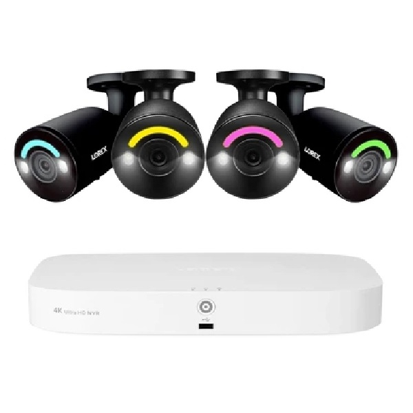 Lorex, N4K2SL-84BB-2, Fusion 4K 2TB Wired NVR System with 4 x Black Bullet AI PoE Cameras Featuring Smart Security Lighting