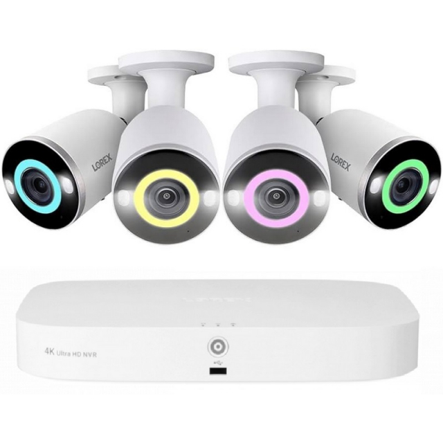 Lorex, N4K2SL-84WB-2, Fusion 4K 2TB Wired NVR System with 4 x White Bullet AI PoE Cameras Featuring Smart Security Lighting