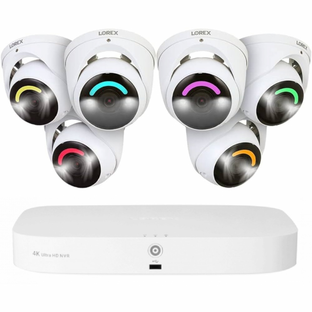 Lorex, N4K2SL-86WD-2, Fusion 4K 2TB Wired NVR System with 6 x White Dome Cameras Featuring Smart Security Lighting