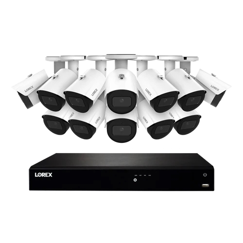Lorex, N4K4-1612WB-1, Fusion Series White 4K 4TB Wired NVR System with 12 x A14 IP Bullet Cameras