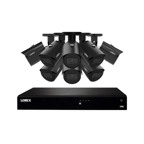 Lorex, N4K4-168BB-1, Fusion Series Black 4K 4TB Wired NVR System with 8 x A14 IP Bullet Cameras