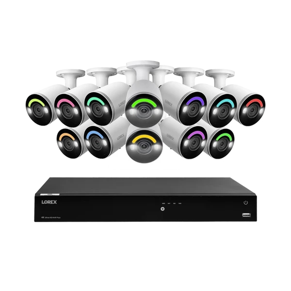 Lorex, N4K4SL-1612WB-E863, Fusion Series 4K 4TB Wired NVR System with 12 x H12 Wired 4K IP Bullet Cameras