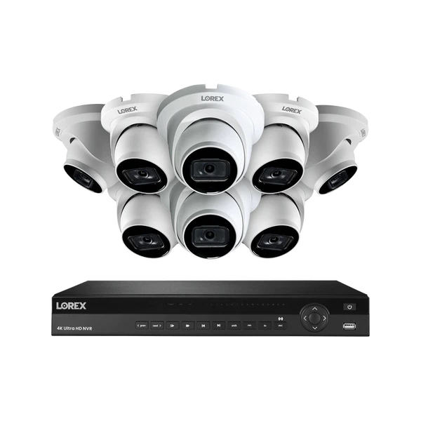 Lorex, NC4K4F-168BD, Nocturnal 3 4K (16 Camera Capable) 4TB NVR System with 8 Smart IP Dome Security Cameras with Listen-In Audio and 30FPS, Color White