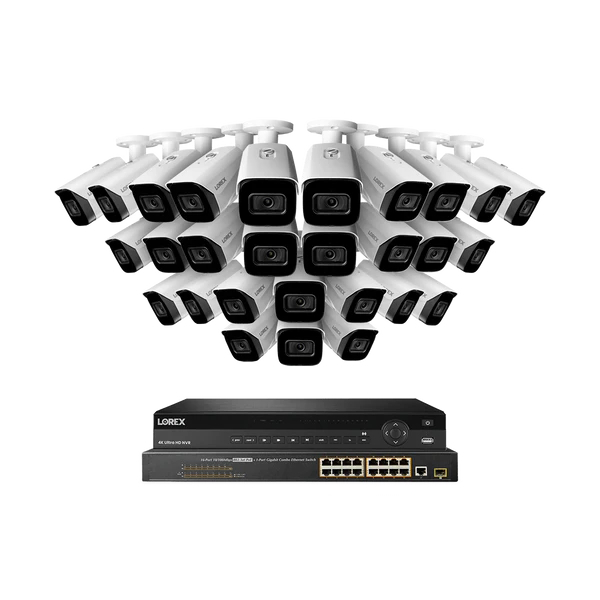 Lorex NC4K8F-3228WB-1 NVR System, 28 Bullet White Cameras, 8 TB