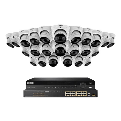 Lorex, NC4K8MV-3224WD-2, 4K 32-Channel 8TB Wired NVR System with Nocturnal 24 Smart IP Dome Camera Featuring Motorized Varifocal Lens, Listen-In Audio and 30FPS Recording, White