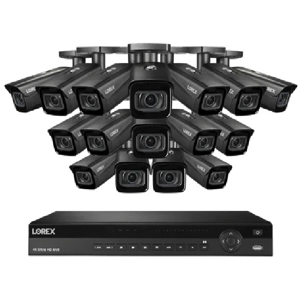 Lorex, NP4K4MV-1616BB, 4K 4TB Wired NVR System with 16 x Black Nocturnal 3 Smart IP Bullet Cameras with Motorized Varifocal Lens