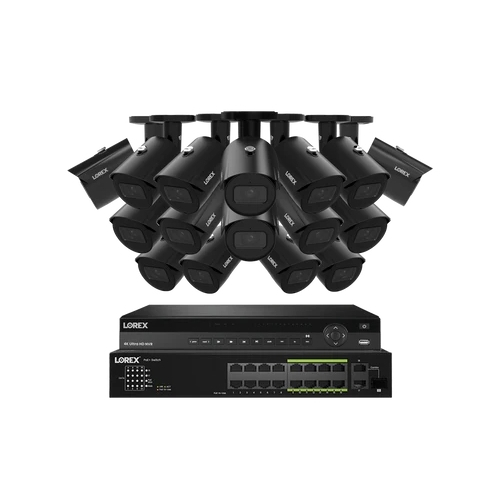 Lorex, NP4K8-3216BB-1, Elite Series Black 4K 8TB Wired NVR System with 16 x A14 IP Bullet Cameras