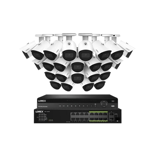 Lorex, NP4K8-3224WB-1, Elite Series White 4K 8TB Wired NVR System with 24 x A14 IP Bullet Cameras