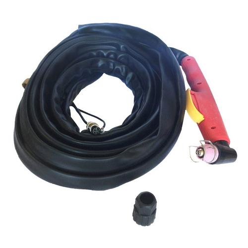 This set includes an approximate 24-foot long pilot arc plasma cutting torch with 5-prong connection and a connection safe protector.