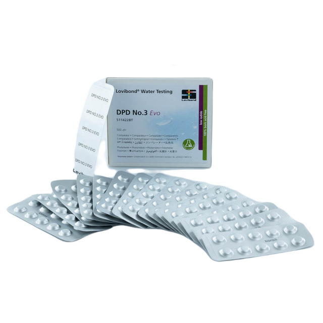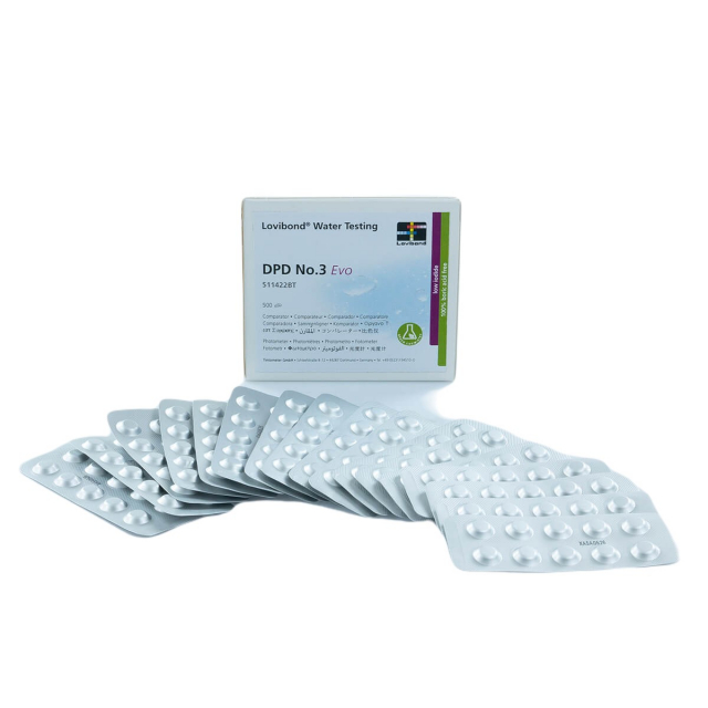 One step ahead with Lovibond®: DPD No.3 Evo contains only small amounts of potassium iodide. Water analysis at the pool has never been safer. The tablets can be used safely and, with their formulation, provide the usual reliable results. As an indicator for pool hygiene, DPD No.3 Evo in combination with DPD No. 1 is indispensable, especially for measuring the total chlorine content in pool hygiene. Water analysis couldn't be quicker, simpler or more cost-effective. Together with the boric acid-free Green Chemistry, you are on the safe side with the potassium-reduced, enormously long-life DPD No. 3 Evo reagents.