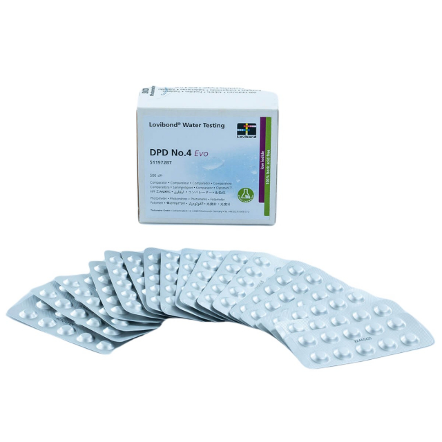 One step ahead with Lovibond®: DPD No.4 Evo contains only small amounts of potassium iodide. Water analysis at the pool has never been safer. The tablets can be used safely and, with their formulation, provide the usual reliable results. As an indicator of pool hygiene, the DPD No.4 Evo tablets are indispensable for detecting the total chlorine content, especially in pool hygiene. Water analysis couldn't be quicker, simpler or more cost-effective. Together with the boric acid-free Green Chemistry, you are on the safe side with the potassium-reduced, enormously long-life DPD No.4 Evo reagents.