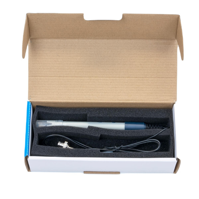 The SD pH electrode type 330 with gel electrolyte is cost-effective and suitable for universal applications. Filling of the internal electrolyte becomes unnecessary due to the use of a KCl gel electrolyte, which keeps maintenance requirements low. The storage bottle with rubber seal is ideal for keeping the glass membrane moist even during long storage periods, thus ensuring perfect sensor performance and service life. The robust plastic housing made of PC provides the necessary mechanical stability and protects the spherical glass membrane from breakage. The BNC connector is suitable for all pH meters equipped with a BNC socket. Temperature compensation is achieved either by manual input into the meter or automatically by using a SD temperature sensor.