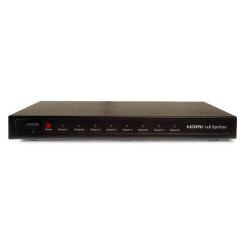 The splitter is an eight output HDMI splitter. It distributes the HDMI input into eight identical outputs. These eight outputs are synchronized. Has the ability of buffering and amplifying. Each unit’s output can achieves long distance transmission of HDMI signal up to 15 meters