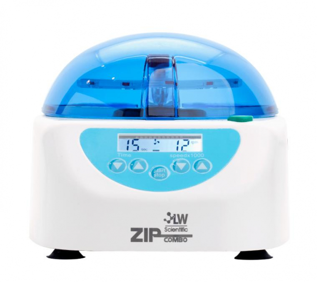 The LW Scientific ZipCombo centrifuge is the perfect solution to your micro-centrifugation needs! It provides all the performance of popular “Stat” centrifuges at a fraction of the cost. Spin down hematocrits at 12,000 rpm in only 3 minutes. Change the rotor to spin micro tubes at 12,000 rpms for serum in 3 minutes. Then use the digital controls to decrease the speed to spin urines in microtubes, too!