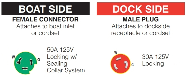 Female Connector: 50A 125V, Male Plug: 30A 125V