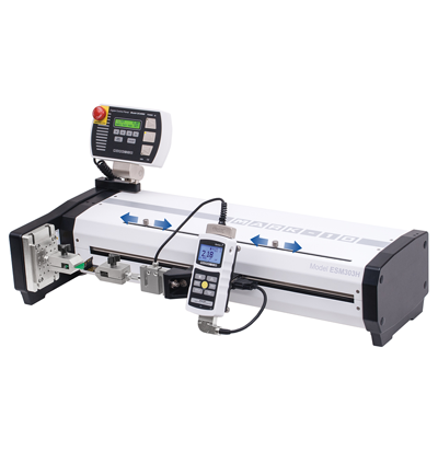 The ESM303H is a highly configurable horizontal force tester for tension and compression measurement applications up to 300 lbF [1.5 kN], with a rugged design suitable for laboratory and production environments. Sample setup and fine positioning are a breeze with available FollowMe™ force-based positioning - using your hand as your guide, push and pull on the force gauge or load cell to move the crosshead at a variable rate of speed.