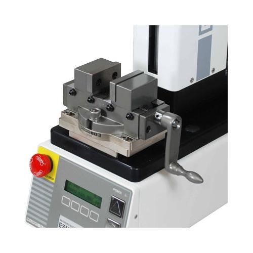 This general purpose self-centering vise can be used in a wide range of tension and compression testing applications. Wide opening range accommodates large and unique samples. Rugged design permits testing up to 500 lbF (2,500 N). Smooth removable jaws can be field-modified to improve sample gripping characteristics as required for pull testing applications.