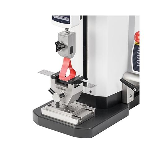 Designed for tack force testing of pressure-sensitive adhesives, in conformance with ASTM D6195 and related standards. A looped sample is loaded onto the test strip, and the closed end of the loop is secured by an upper grip (not included - suggested model: G1008). The test strip may be indexed in three positions, allowing for three tests to be performed between cleaning cycles. The strip is secured and released by a lever-operated clamp. An additional set of three test strips is available.