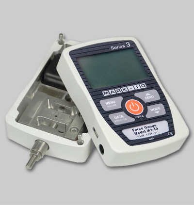 An ergonomic, reversible aluminum housing allows for hand held use or test stand mounting for more sophisticated testing requirements. Series 3 digital force gauges are directly compatible with Mark-10 test stands, grips, and software.