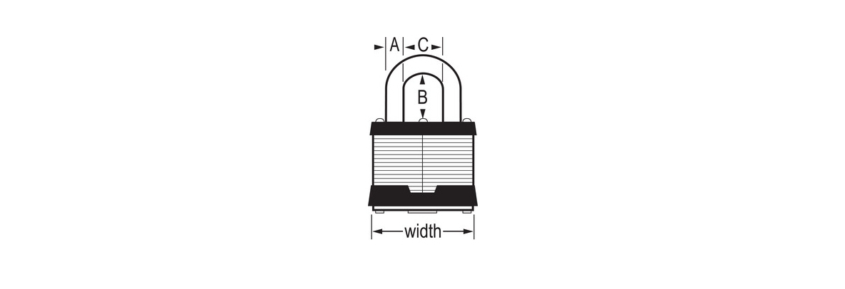 The Master Lock No. 25LJ Laminated Steel Padlock features a 2in (51mm) wide reinforced laminated steel lock body providing extra strength and a 2-1/2in (64mm) tall, 3/8in (19mm) diameter hardened steel shackle for excellent cut resistance. Dual ball bearings locking for maximum pry resistance making it ideal for industrial applications.
