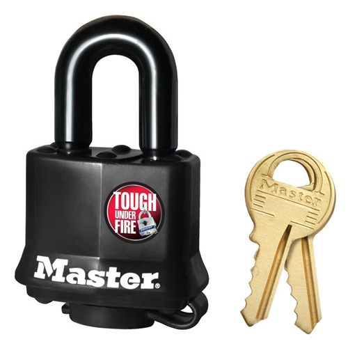 Master Lock 311D black tumbler lock exhibits another superior means for security of your possessions. The laminated body and a specific cap on the keyhole ensure superior weatherability. Thus, your outdoor possessions can be reliably secured without any risk of padlock corrosion. In addition, the durability and proper performance is guaranteed by the shackle and cylinder quality.