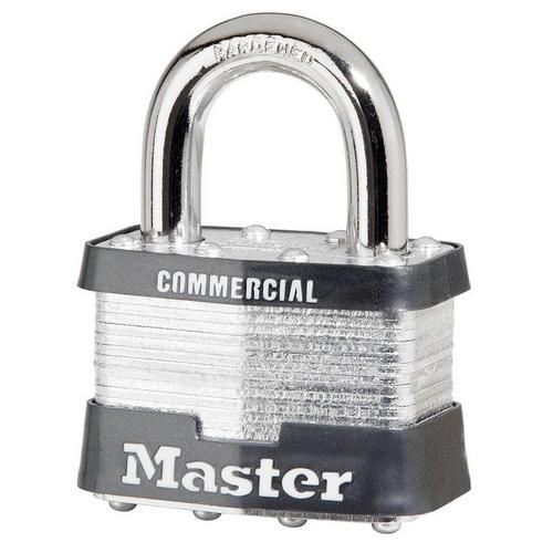 The Master Lock No. 5KALFWP4NOKEY Laminated Steel Padlock features a 2in (51mm) wide reinforced laminated steel lock body providing extra strength and 3/8in (10mm) diameter hardened steel shackle for excellent cut resistance. Dual locking levers provide extra pry resistance making it ideal for industrial applications and the non-rekeyable.