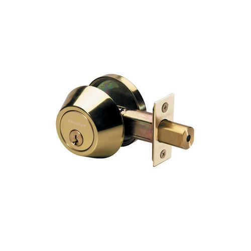 Features a single cylinder deadbolt, with interior thumb turn. The deadbolt is four way adjustable for 2-3/8in or 2-3/4in backset, square, or rounded corners. The deadbolt offers ANSI Grade 3 performance for exterior locking applications. The polished brass finish provides a sleek appearance. Operates with WK2 cylinder.