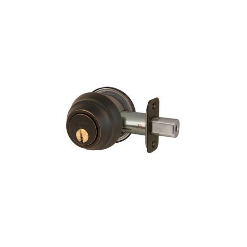 Features a single cylinder deadbolt with interior thumb turn. The deadbolt is four way adjustable for 2-3/8in or 2-3/4in backset, square, or rounded corners. The deadbolt offers ANSI Grade 1 performance for exterior locking applications. The aged bronze finish provides a sleek appearance. Operates with WK2 cylinder.