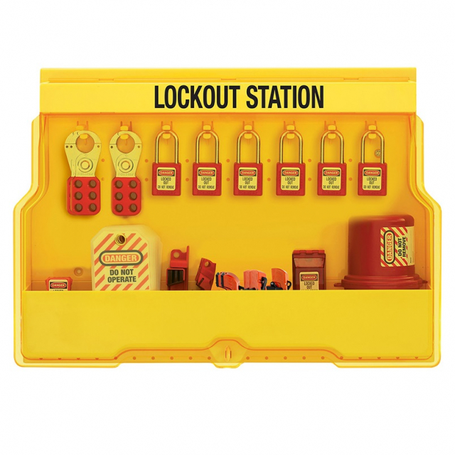 Master Lock S1850E410PRE Lockout Station with Six Zenex Padlocks