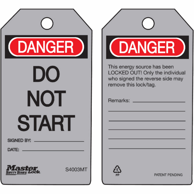 Master Lock S4003MT "Danger Do Not Start" Safety Tag