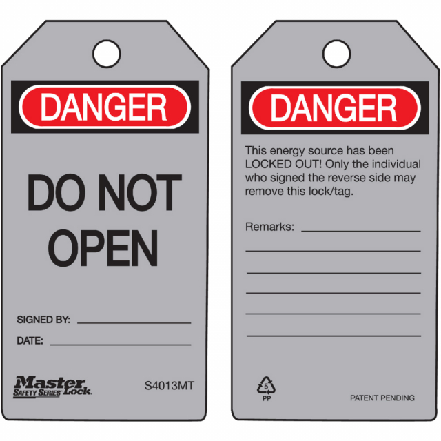 Master Lock S4013MT "Danger Do Not Open" Safety Tag