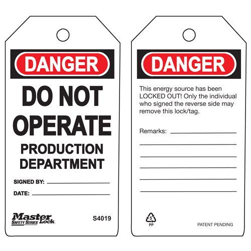 Master Lock S4019 Tag - Do Not Operate